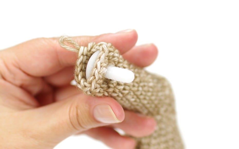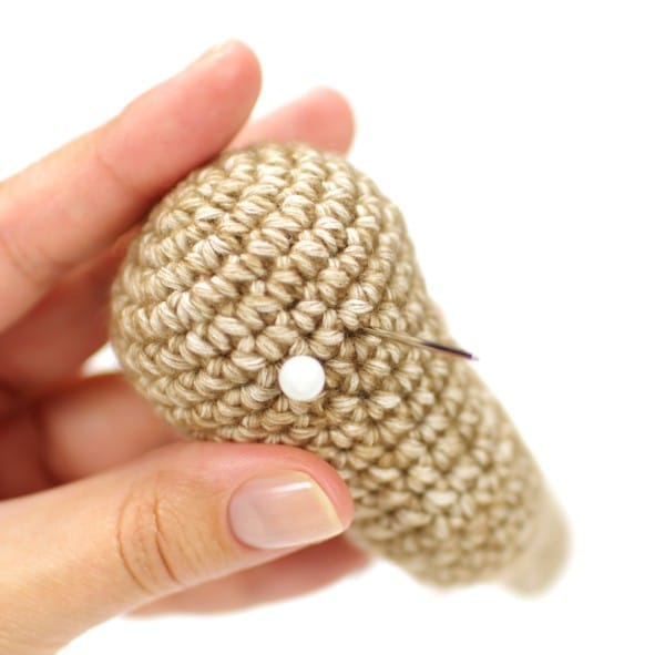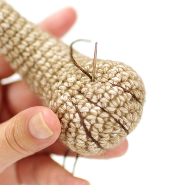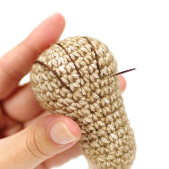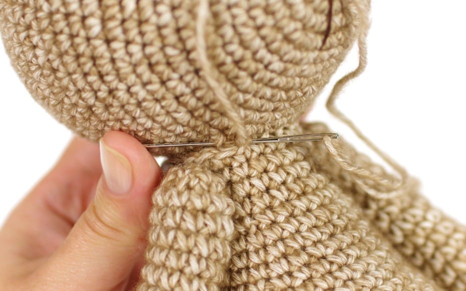 3. Brazos: coserlos en los costados del cuerpo entre las vueltas 24 y 25.