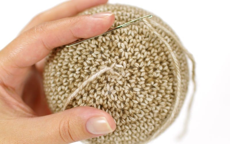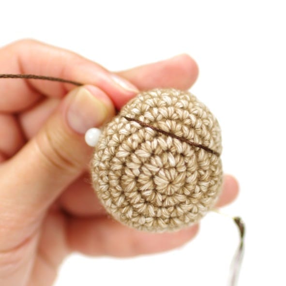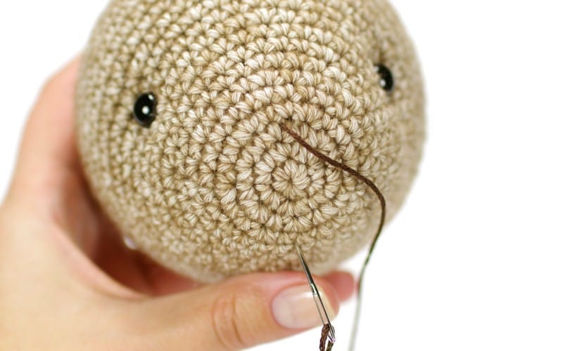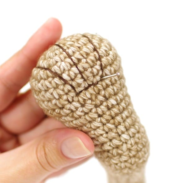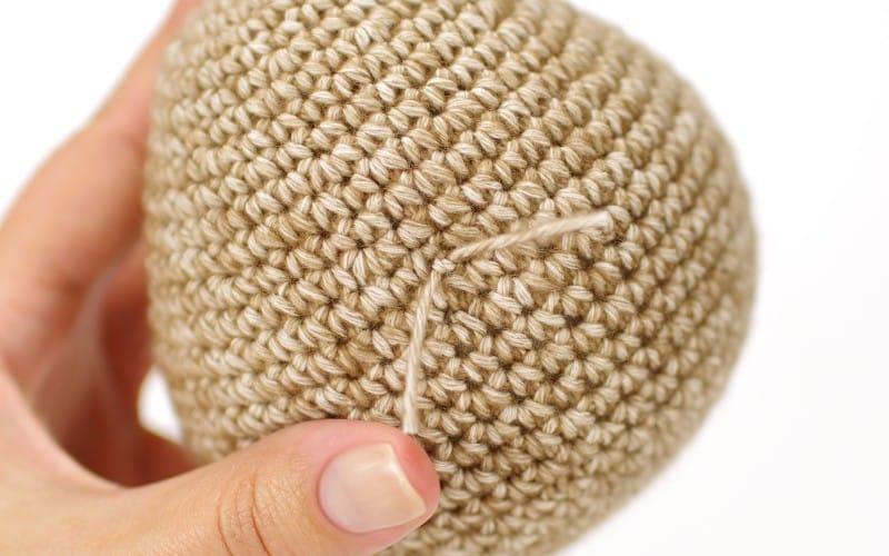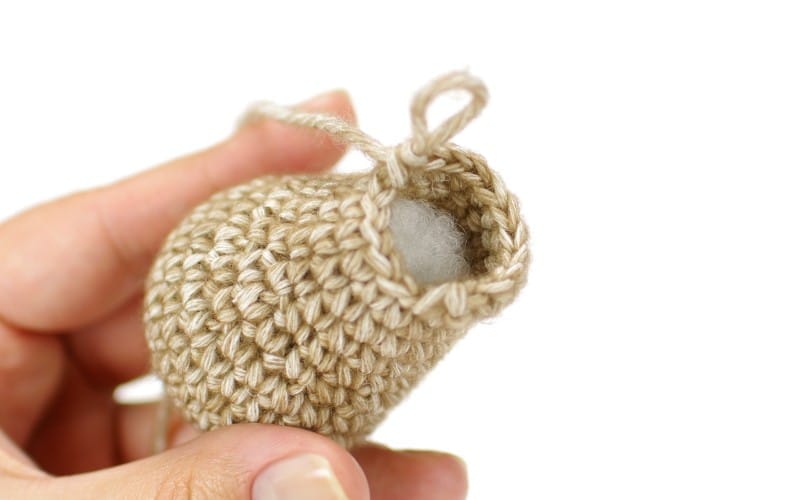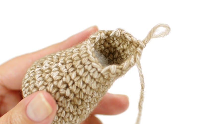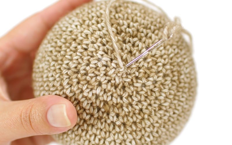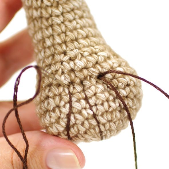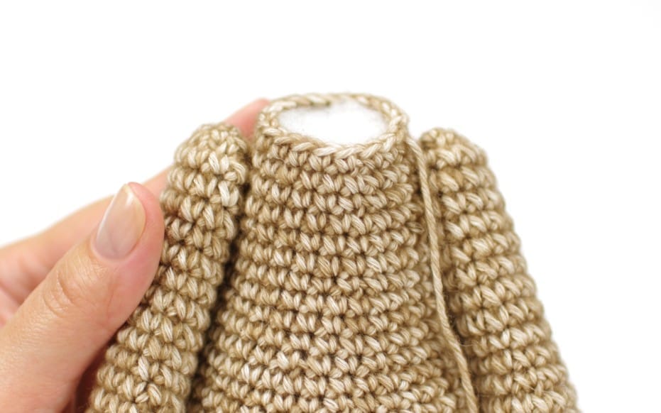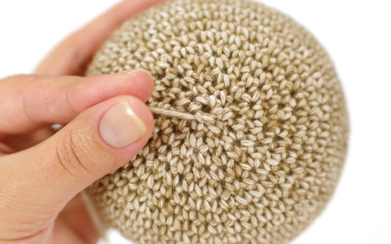 • Terminar de rellenar la cabeza y cortar el hilo, dejando una hebra larga para cerrar.