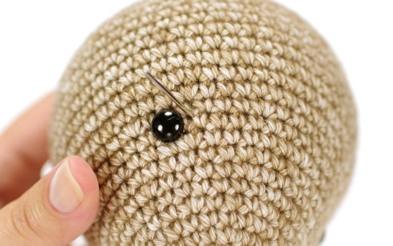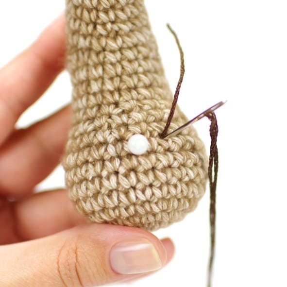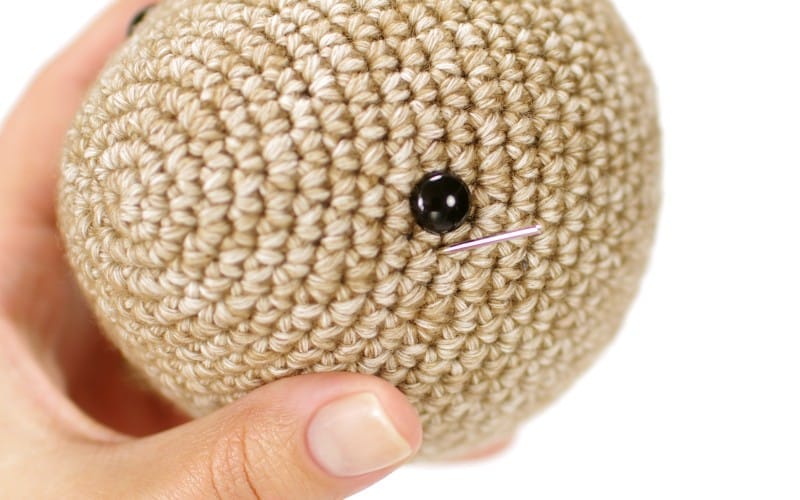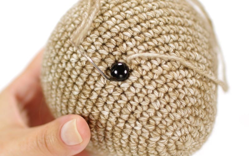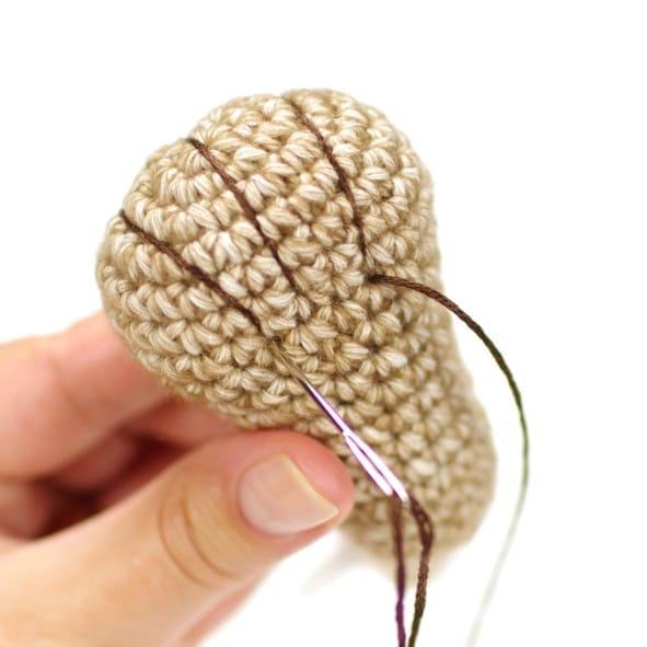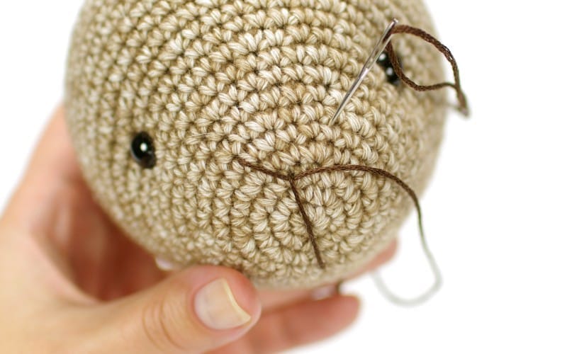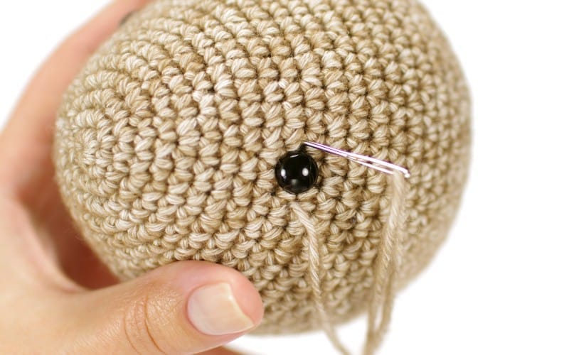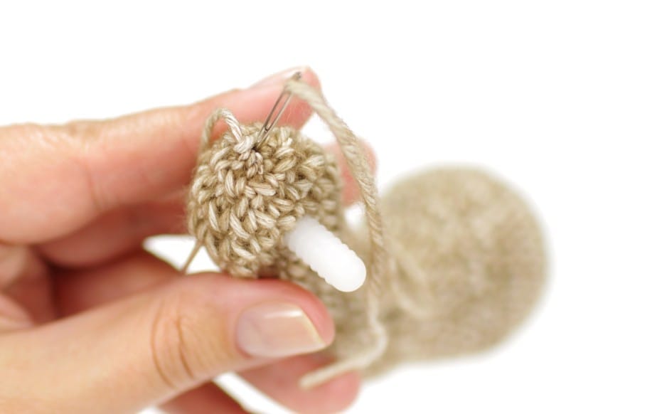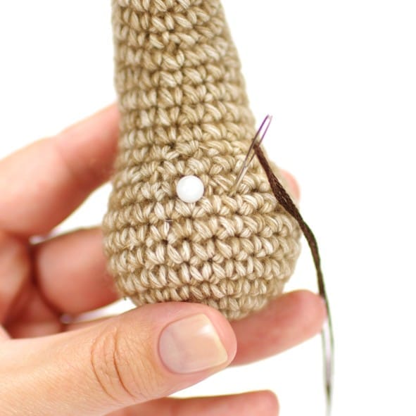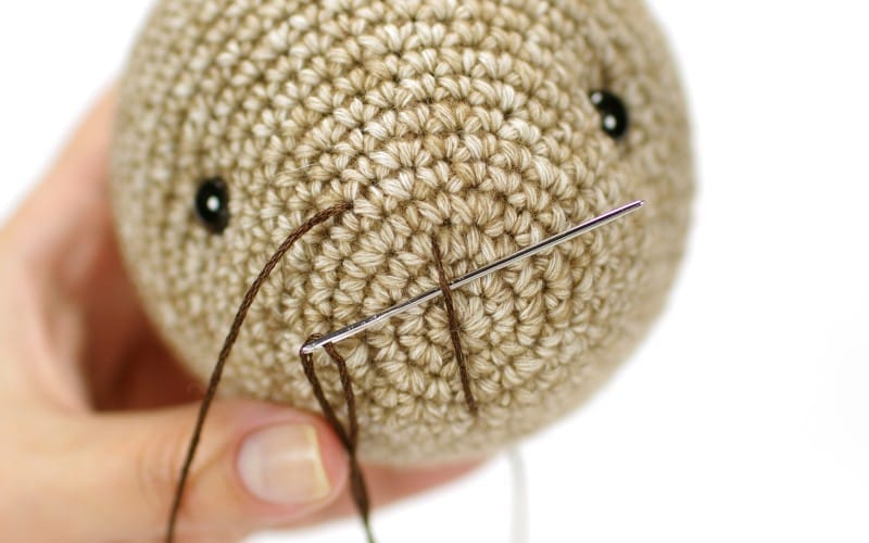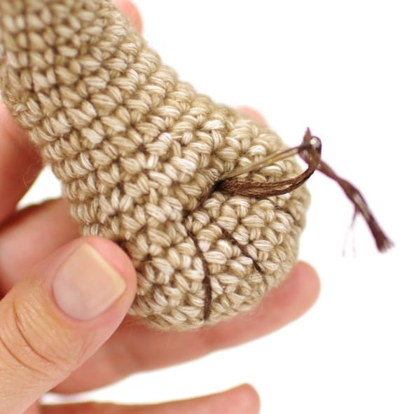 • Terminar de rellenar la cabeza y cortar el hilo, dejando una hebra larga para cerrar.