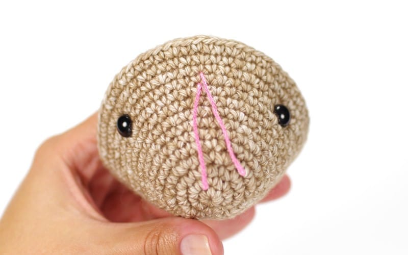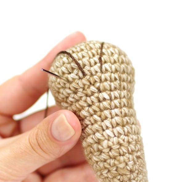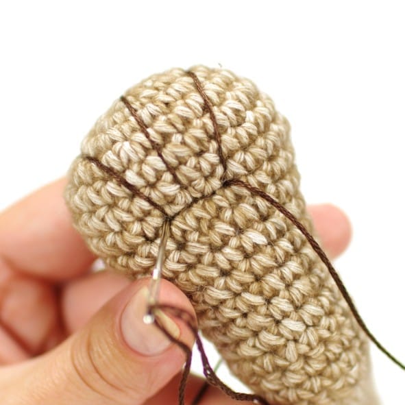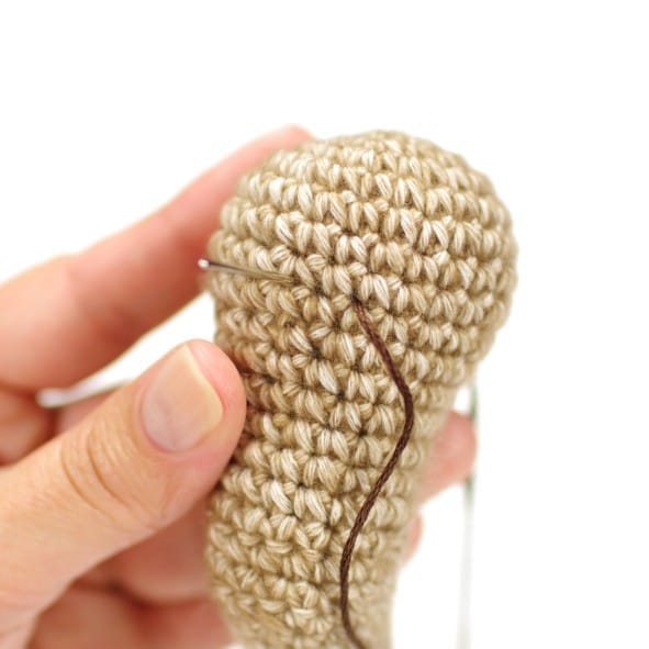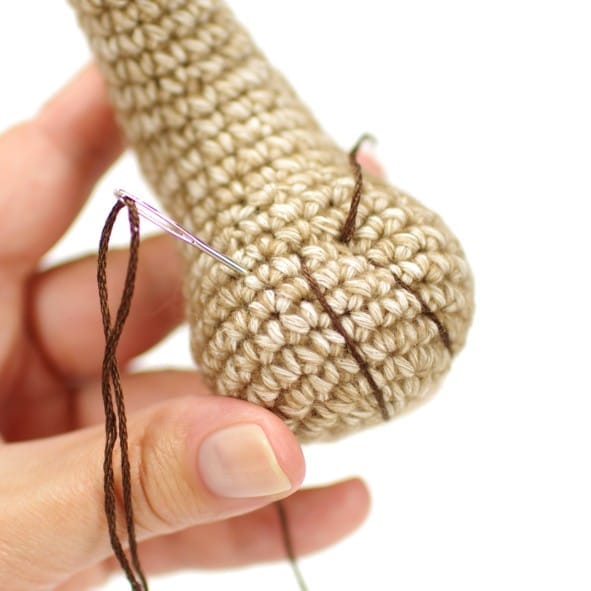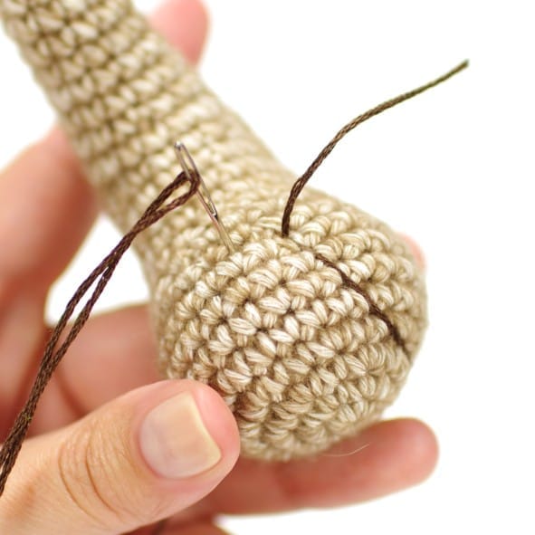 1. Cabeza: coserla al cuerpo con punto de látigo.