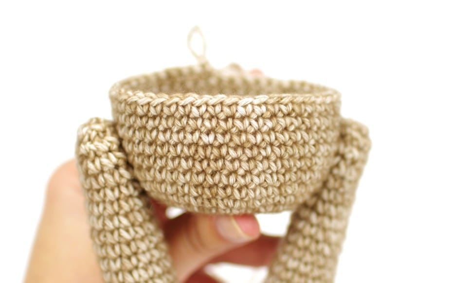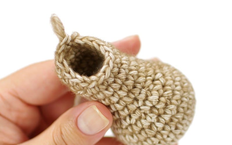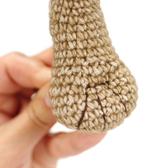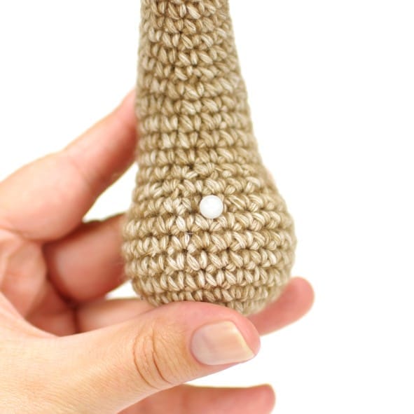4. Piernas: unirlas a los lados del cuerpo entre las vueltas 8 y 9.