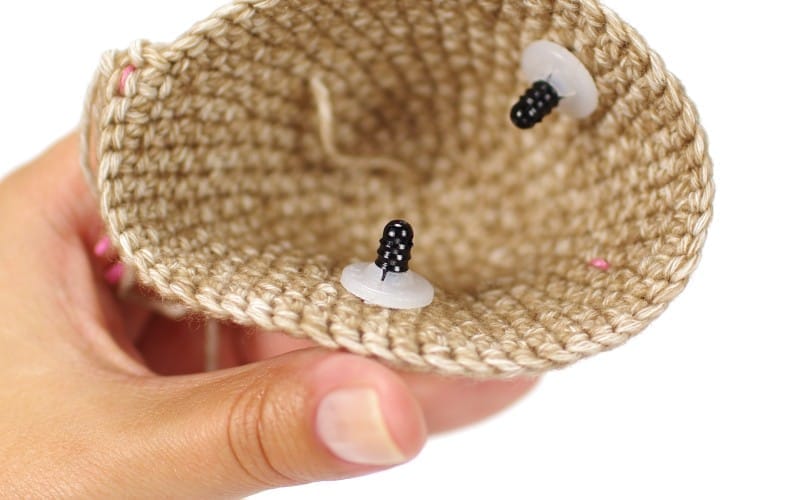 2. Orejas: coserlas en la parte superior de la cabeza.